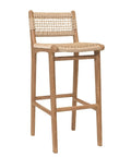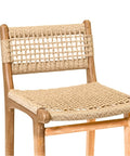 Bar chair with a teak wood structure, featuring a rattan-woven