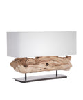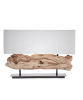i cili ruan strukturën dhe karakterin organik, ndërsa kapaku i bardhë minimal sjell ndriçim të pastër dhe elegant.